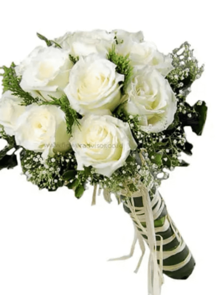 Dominant White Theme: The heavy use of white flowers symbolizes purity, innocence, and new beginnings.