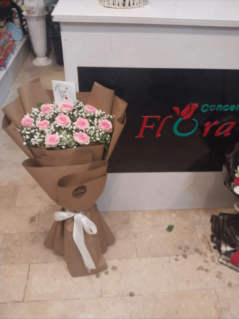 Sada Bahar Mohabbat ka Simple Izhaar! Dozens of soft Pink Roses aur ghane Baby’s Breath ka guldasta, trendy Brown Kraft Paper wrap aur White Ribbon ke saath. Classic aur Heartfelt Gift.