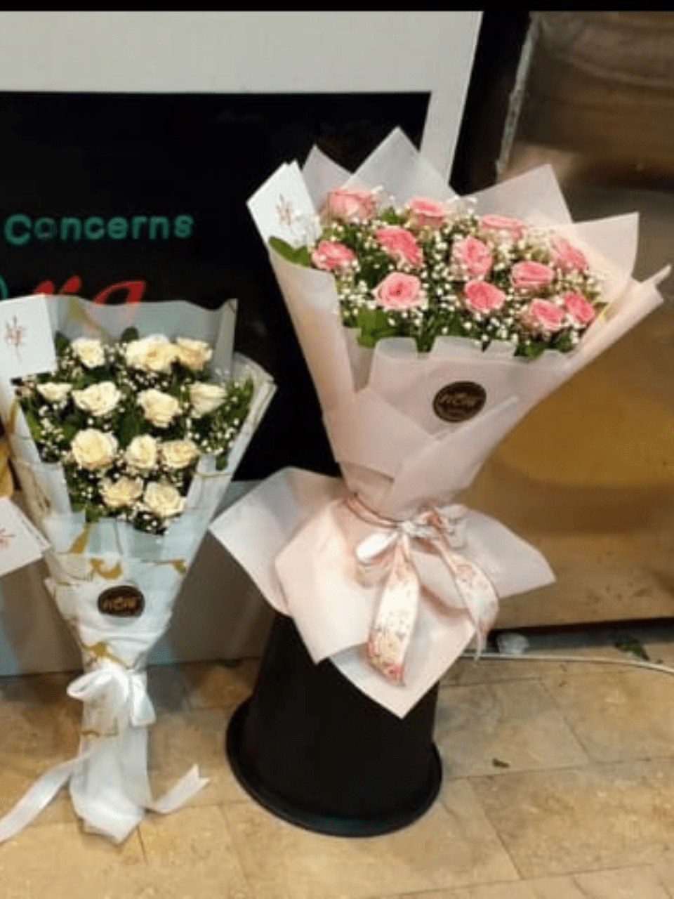 Yeh bouquet un jazbat (emotions) ko zahir karne ke liye perfect hai jo Pyaar aur Izzat se bhare hon. Ismein Dozens of Fresh Light Pink Roses hain, jo Grace aur Admiration ko signify karte hain. Har Rose ko soft Baby’s Breath ne ghera hua hai, jo bouquet ko ek airy aur romantic feel deta hai. Bouquet ki Wrapping bohot hi nazuk aur feminine hai: Soft Light Pink Paper jispar layered folding ki gayi hai, aur isko ek Printed Floral Ribbon ke saath tie kiya gaya hai. Iska large size isko ek Grand Presentation deta hai. Yeh bouquet Anniversary, Mother’s Day, Ya Apne Partner ki Birthday par dene ke liye ideal hai.