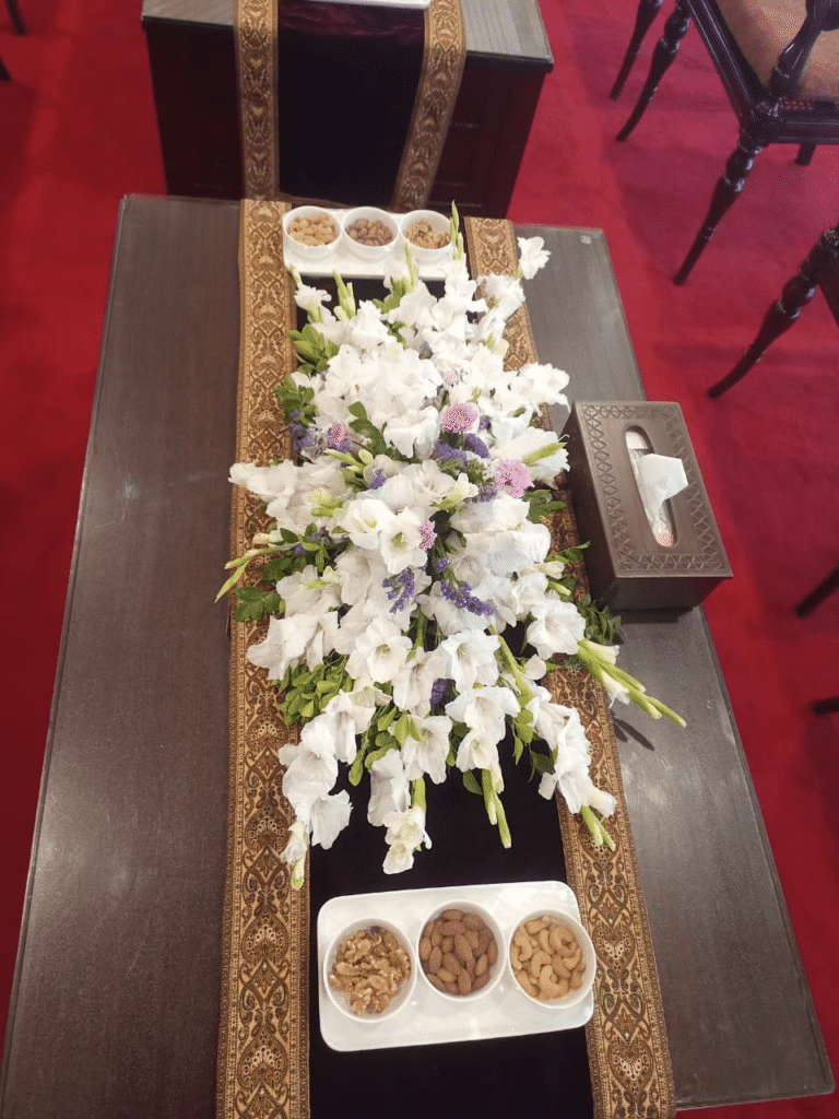 • Floral Accents: Notes ke theek neechay safed aur halke neele rang ke preserved ya artificial phoolon ka aik chota cluster hai. Safed phool purity darshate hain jabke neela rang wealth aur stability ka ehsas deta hai.